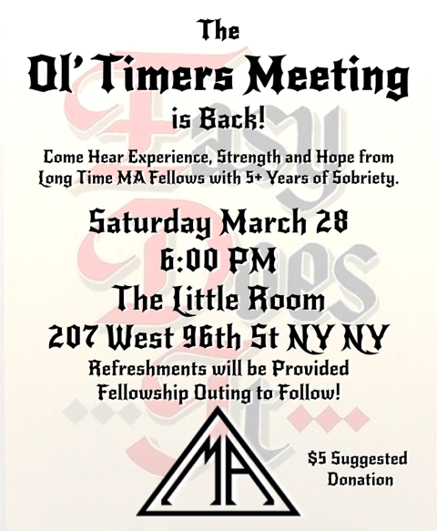Come hear experience, strength, and hope from fellows with 5+ years of sobriety. Refreshments will be provided. Fellowship outing to follow! $5 Suggested Contribution. In person at The Little Room on the Upper West Side of Manhattan (home of the Tokeless Tuesdays meeting)